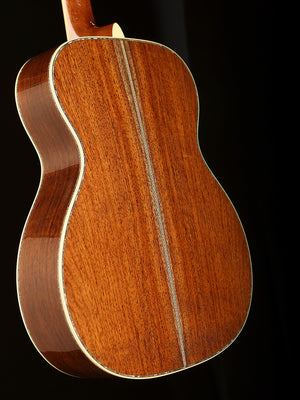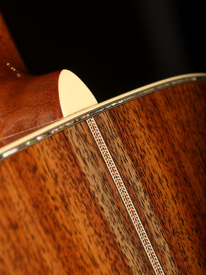 Accented with genuine silver trim on the headplate, pickguard, fingerboard, and bridge, the OM-45 John Mayer Anniversary model is visually striking and unmistakably refined. Its mahogany neck features a comfortable Modified V profile and a 1 11/16" nut width for streamlined playability, while the ebony fingerboard with abalone and mother-of-pearl inlays enhances both feel and appearance. Satin nickel Waverly tuners, scalloped X-bracing, and a bold Gray Sunburst finish complete this one-of-a-kind instrument that balances tone, artistry, and legacy.