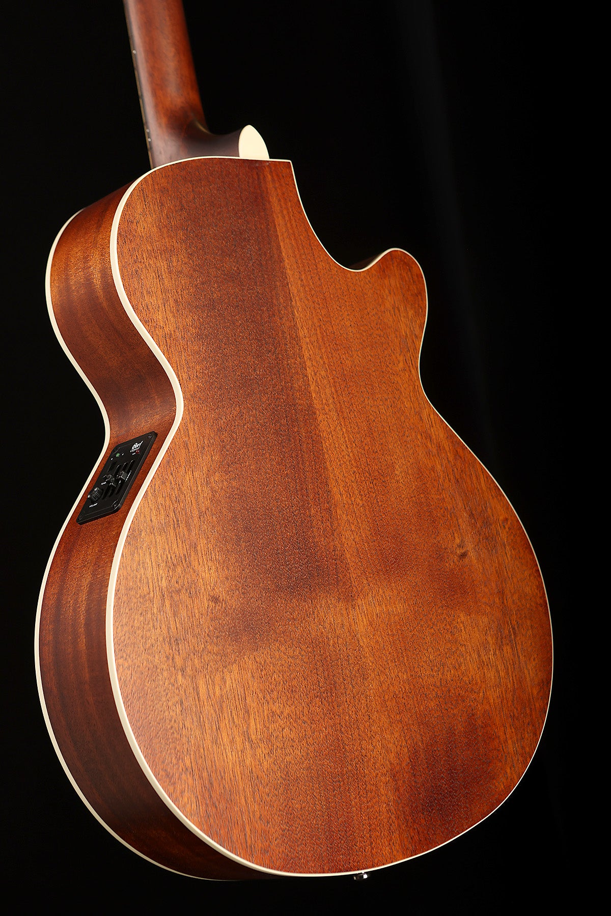 • Spruce top with African Mahogany (Okoume) back and sides for rich, full tone
