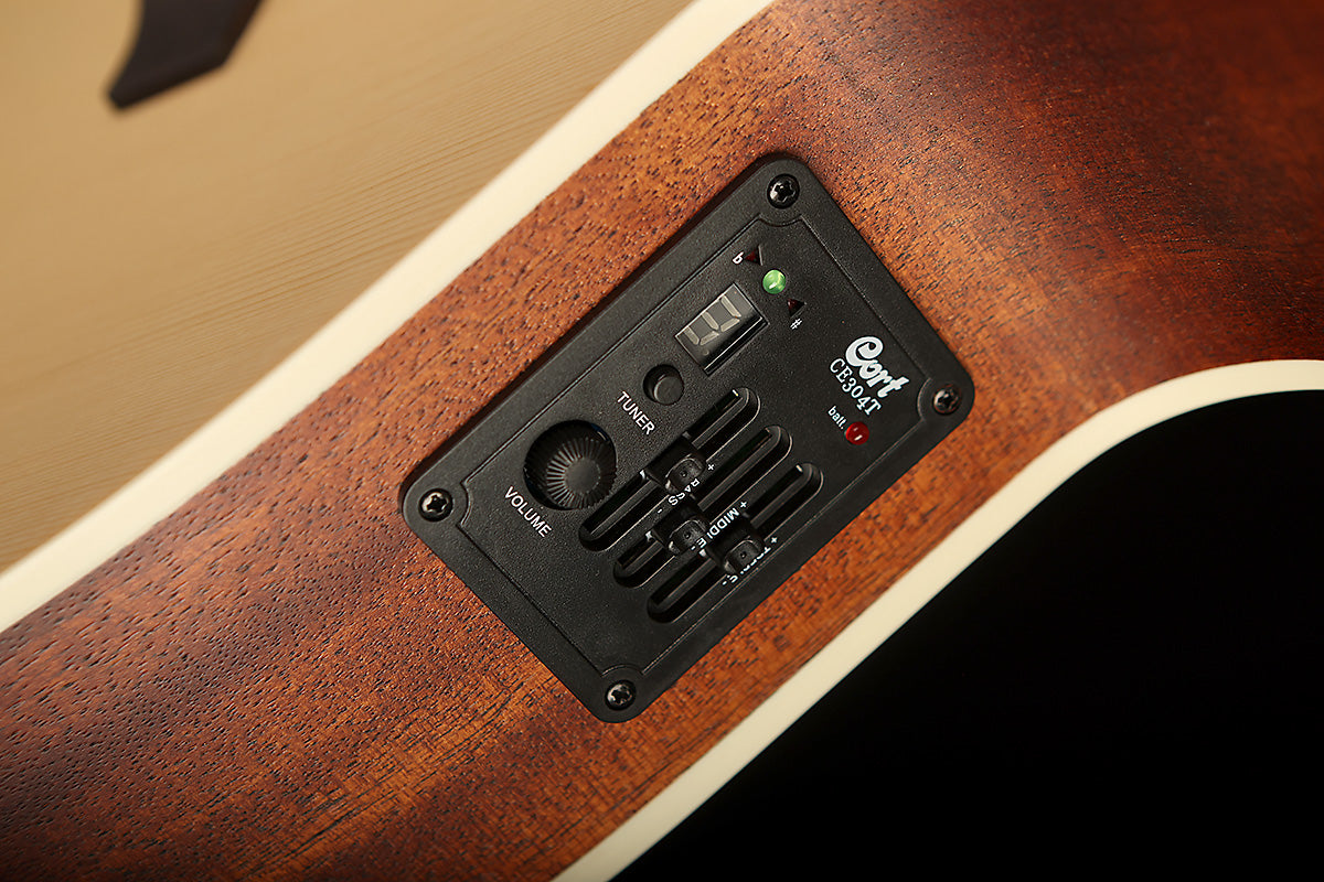 • Cort CE304T preamp with ceramic pickup and onboard EQ for clean amplification