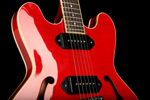 This fully hollow, double cutaway is the lightest guitar in the Heritage lineup. Constructed using the same laminate maple rim set as the H-535 model, the open construction and lack of a full center block, allows this guitar to breathe naturally. The addition of a set of Lollar P-90s, provides warm and growling tones that many players seeking a vintage tone desire.