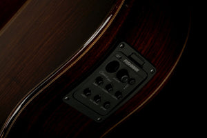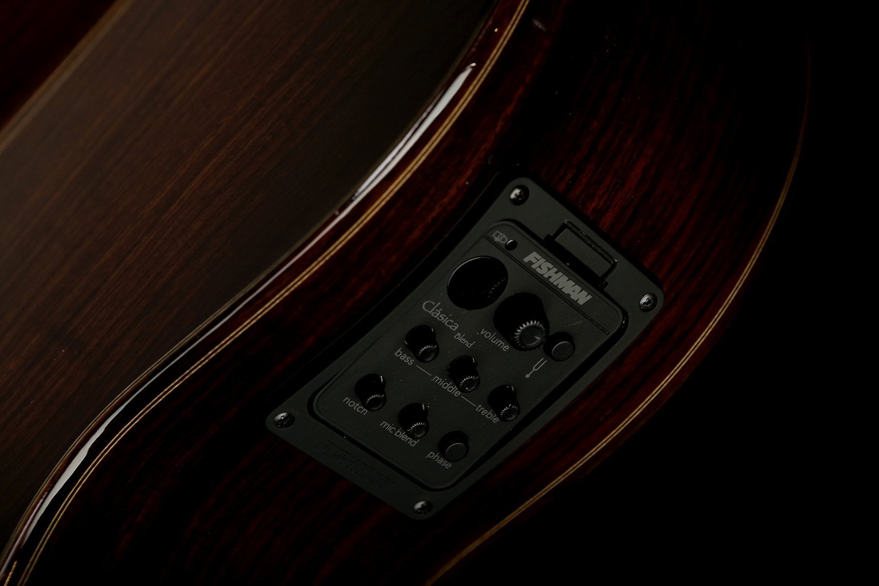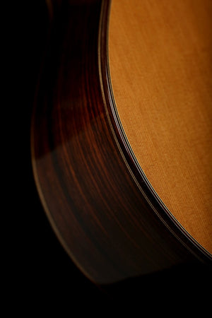 Solid cedar top and solid Indian rosewood back and sides for warm, articulate tone