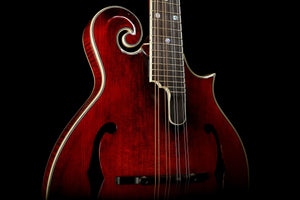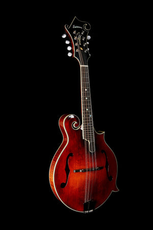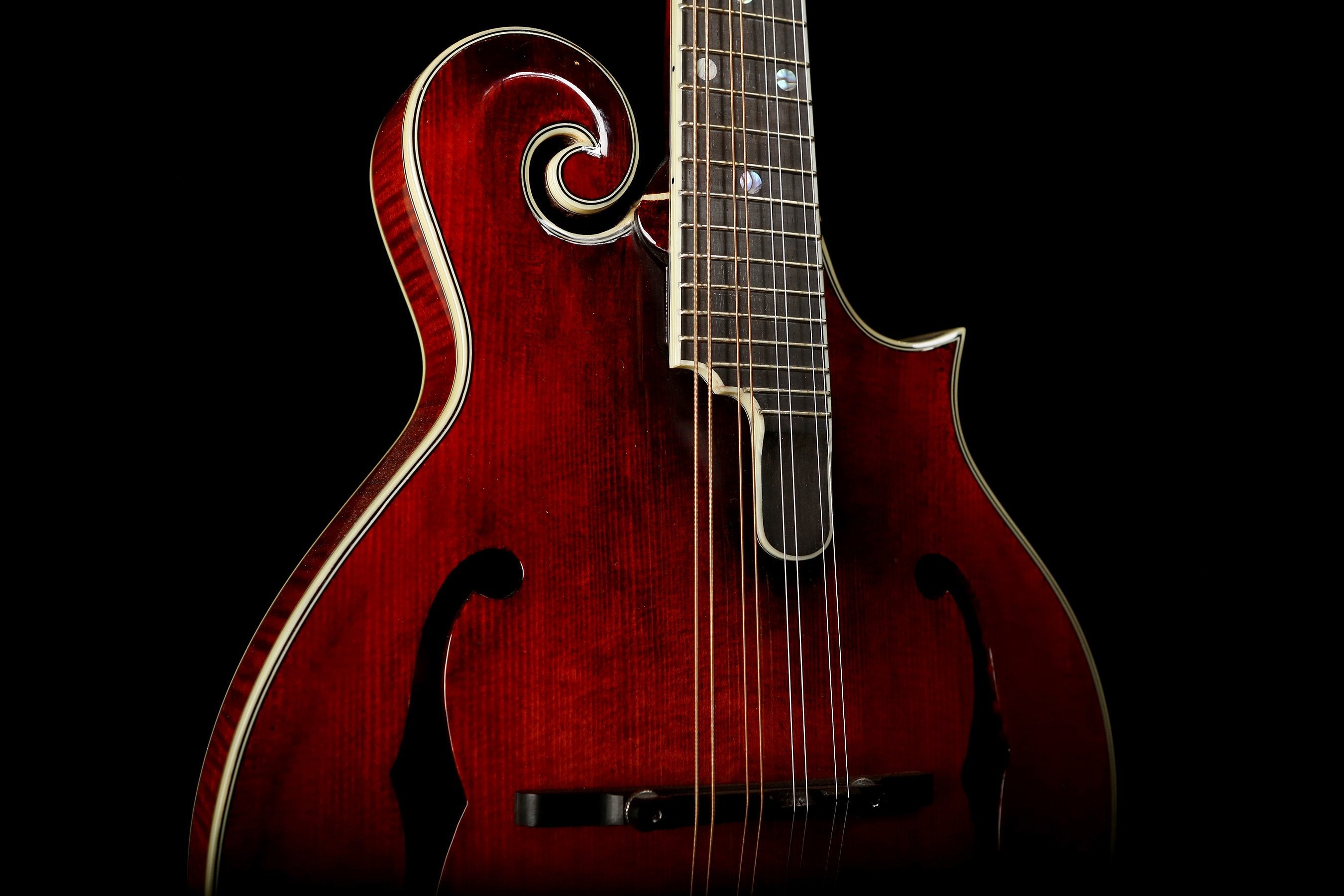 Eastman deluxe F-style mandolin with Adirondack spruce top, :Solid Highly Flamed Maple back and sides, Gloss Nitrocellulose finish, and hard case included.