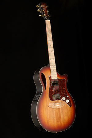 •All solid timber cutaway True Hybrid thinline Grand Auditorium with F.E.A internal bracing.