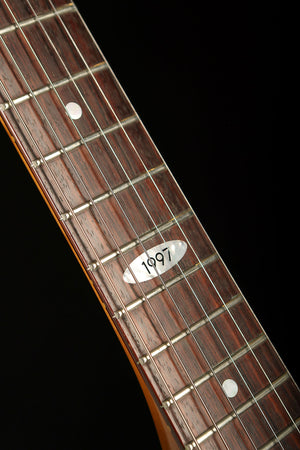 With its comfortable maple neck, rosewood fingerboard, and 21 vintage-style frets, this Strat feels instantly familiar to anyone who loves traditional S-style guitars. A 6-screw tremolo bridge offers classic Strat vibrato response, while the SSS pickup layout and 5-way selector give you all the expected glassy neck tones, scooped “in-between” sounds, and biting bridge sparkle. For players chasing a collectible Strat that’s built to be played as hard as it’s admired, the ’97 Collector’s Edition is a standout choice.