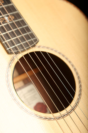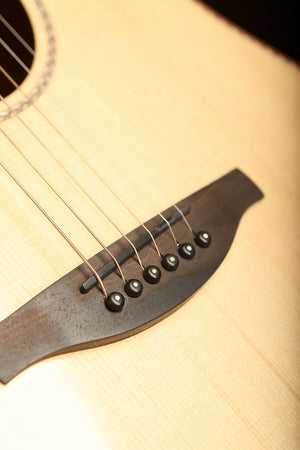 This 2021-built guitar is in great condition, aside from a few dings on the lower bout of the soundboard and some small gouges on the bridge where a tool must have been used to remove a bridge pin. The playability is superb with a slinky, buzz-free action, and the tone is balanced, wood and clear with excellent sustain. The Pau Ferro back-and-sides gives it a tone somewhere between rosewood and mahogany with a great scooped midrange that would make it an ideal choice as a songwriters companion! Includes original hardshell case.