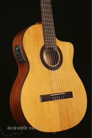 The MCG40 series classical acoustic electric guitar is the first in the Katoh solid top range. A solid Spruce top allows for freer vibration, translating into more dynamic expression in performance. This model also features a sapele back and sides for clean dynamics. Fitted with the Fishman iSys pickup for total control in stage and recording situations.