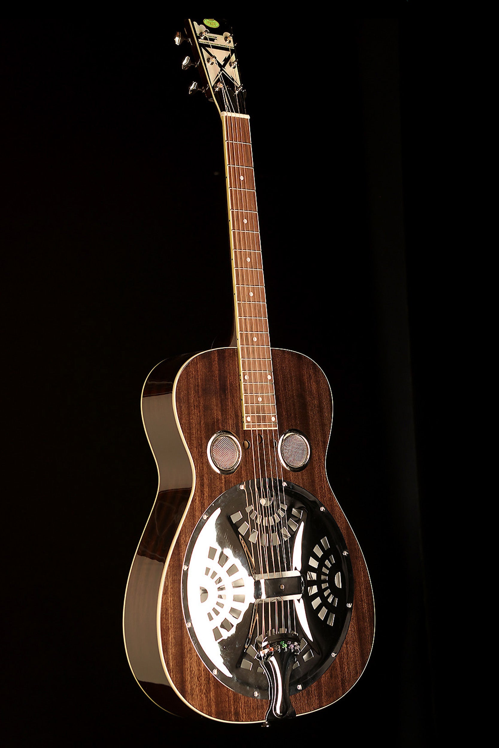 Equipped with a maple trapezoid sound well, patented spider bridge, and US-made aluminum cone, the RD-56 produces crisp, articulate tone that's rich with vintage character. Its smooth-playing fingerboard, 1 3/4" nut width, and stylish art deco peghead inlay make this a compelling option for players who demand both looks and performance in a resonator.