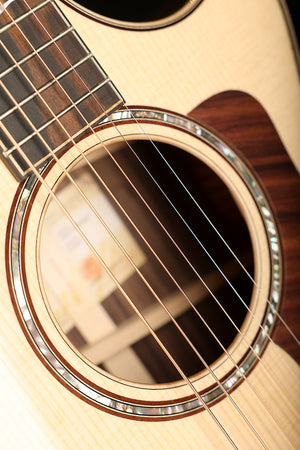 Taylor’s V-Class bracing enhances volume, sustain, and intonation accuracy, giving the 812ce a refined, piano-like response across the fretboard. A rosewood armrest improves long-session comfort, while the slim Taylor neck profile offers effortless playability. Finished with elegant appointments and equipped with Expression System® 2 electronics, the 812ce is a premium acoustic-electric equally at home on stage, in the studio, or in the living room.