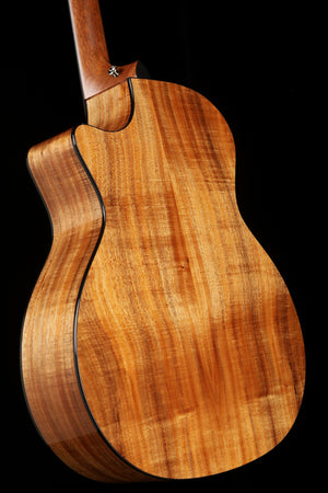 This Grand Auditorium boasts back and sides of solid figured Australian Blackwood paired with a Sitka spruce top, producing a punchy, shimmering midrange, along with a warm, woody low-end character to balance the vibrant treble range. The V-Class bracing scheme adds a boost to power and sustain, and the always-comfortable Taylor neck makes for a smooth feel for any playing style.