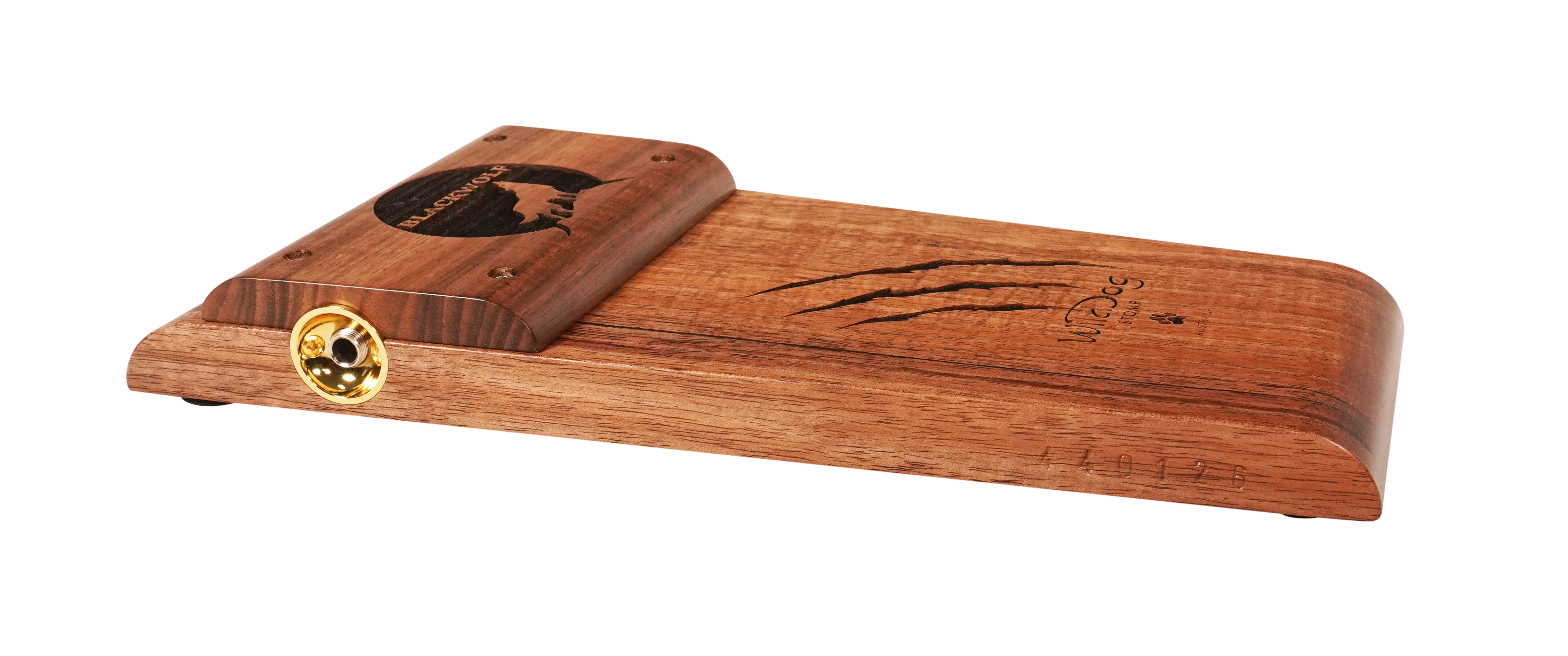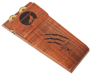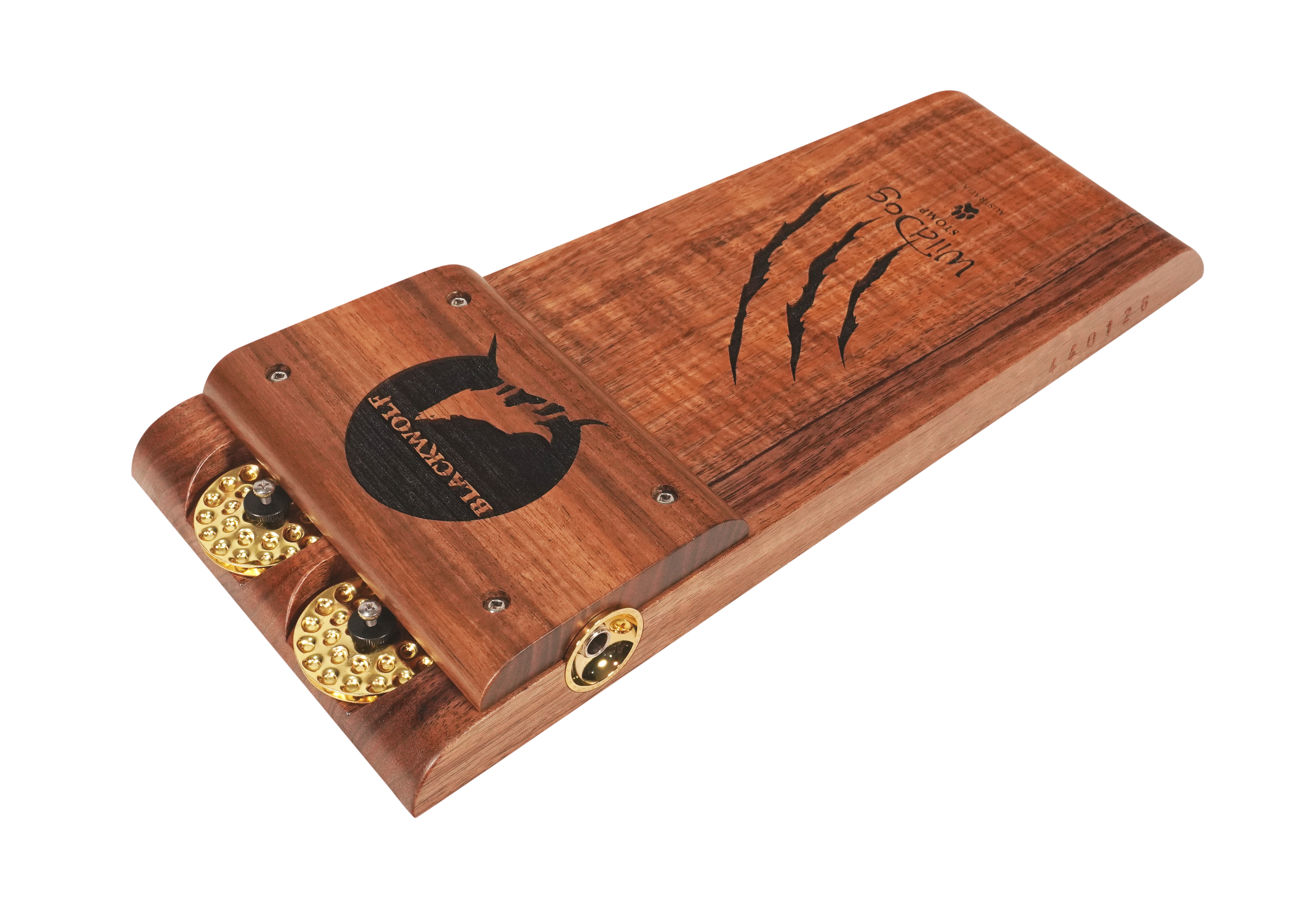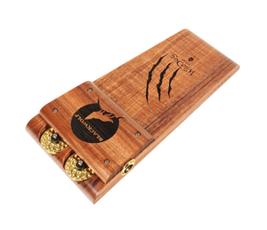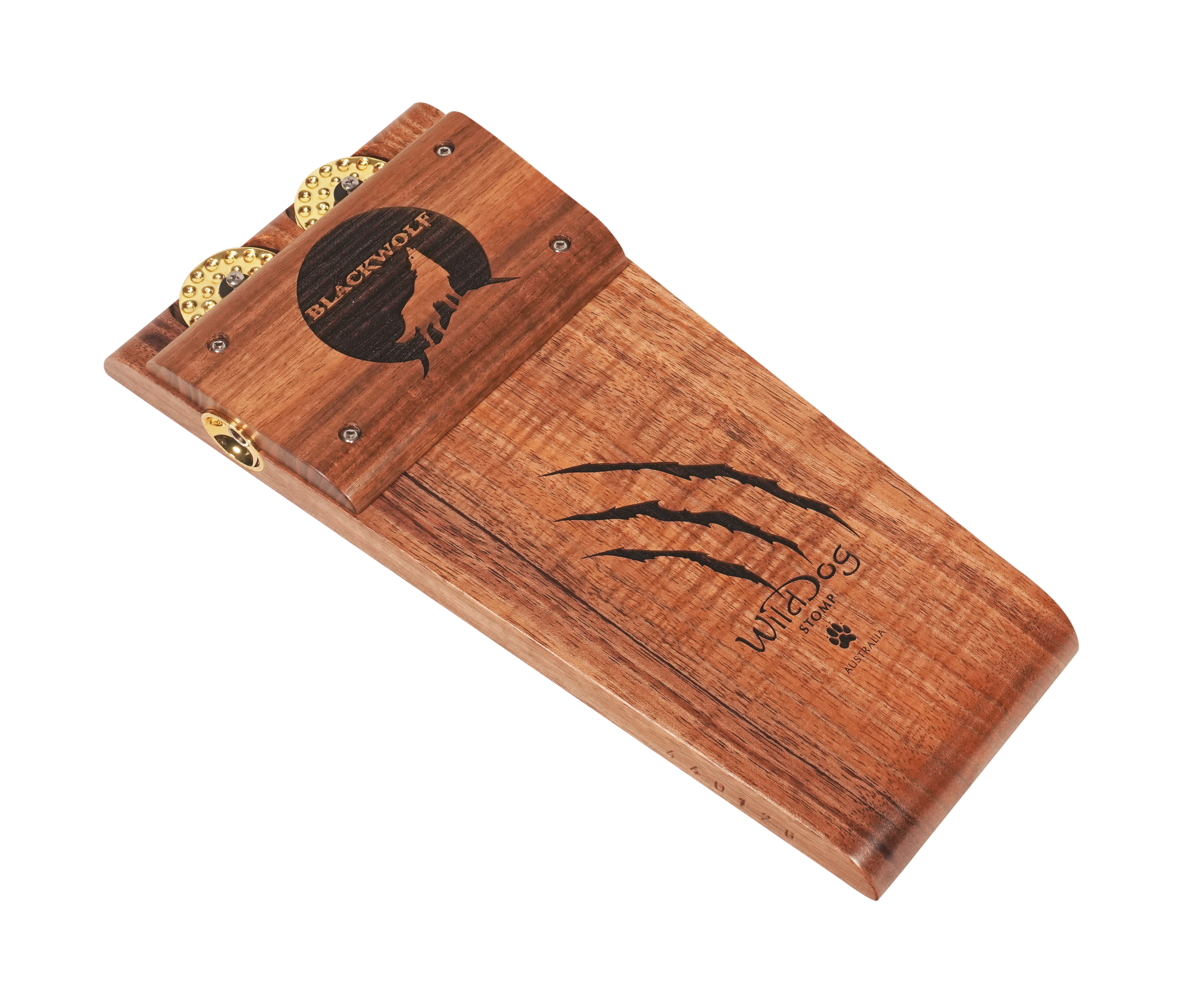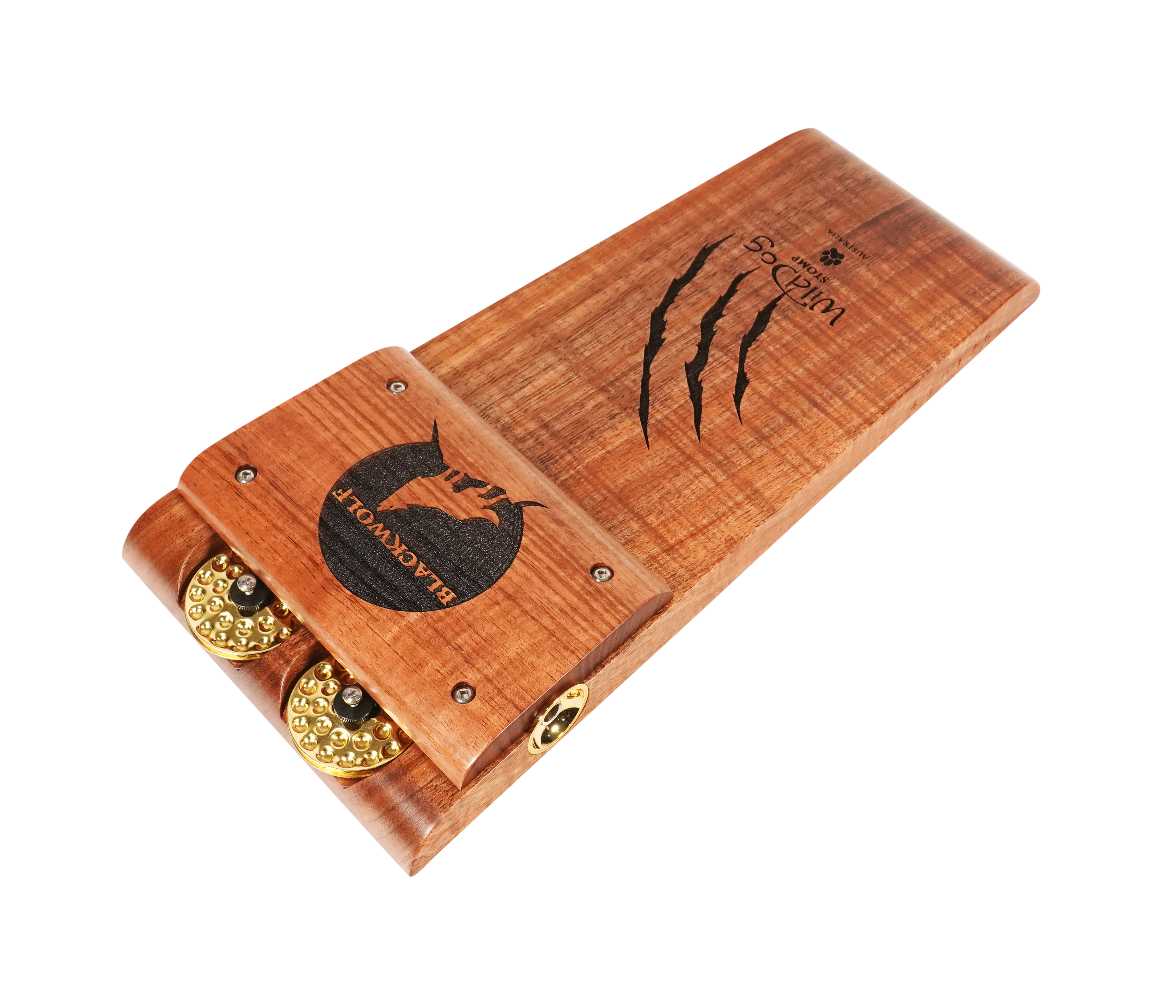 The Wild Dog Custom Shop Blackwolf Stomp Box is a premium rhythmic powerhouse built for players who demand striking aesthetics and massive acoustic tone. Handcrafted from richly figured Australian Blackwood, the Blackwolf delivers a thunderous bass response with a tight, punchy low end. Unique laser-etched claw marks and Wild Dog branding add a bold visual flair, while gold dimpled jingles and hardware elevate the look to boutique-level artistry.