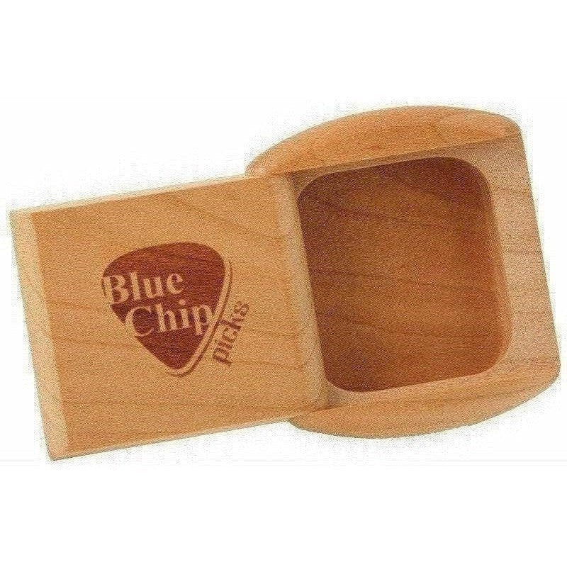 A beautiful, hand-crafted, cherry box for safely storing your BlueChip flat picks. The box is 1/2" deep by 2" square. This high-quality, custom box is laser engraved with the BlueChip logo. The fit and finish quality is the same precision as you have come to expect from BlueChip picks.