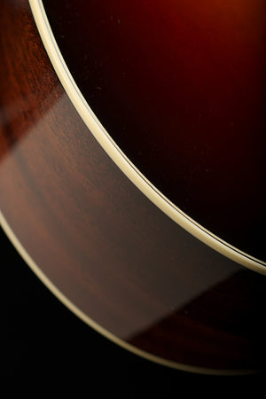 The Bourgeois Touchstone Standard L-DBO combines Depression-era aesthetics with modern acoustic excellence, delivering a compact powerhouse built for discerning players. With its L-DBO body—slightly larger than a 00 and smaller than an OM—this guitar offers a unique silhouette and tonal profile, enhanced by a torrefied Sitka spruce top and Adirondack spruce bracing. The larger soundhole and narrow ¼" top bracing allow it to deliver surprisingly bold projection and tonal depth for its size.