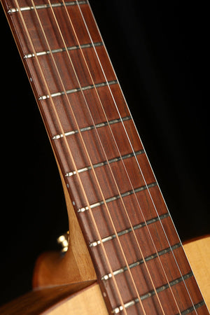 This very special guitar was built in 2007, and is the actual guitar documented in Chris' DVD course! This guitar features a Bunya top with stunning Fiddleback Blackwood back and sides, and is signed inside by Chris as well as the team that filmed and produced the DVD series. This is a one-owner guitar in excellent condition, with minimal playwear and a rich, warm tonailty. It's a real collector's item, and comes complete with Chris' DVD set and accompanying textbook. Includes hardshell case.