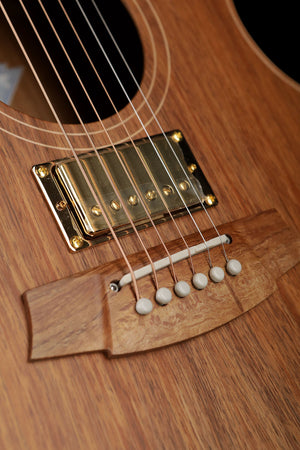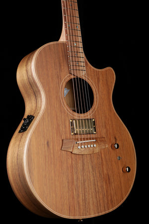 The Cole Clark Angel AN2EC Blackwood/Blackwood Humbucker is a premium acoustic-electric guitar designed for players who need both dynamic unplugged tone and the drive of an electric pickup. With a solid Australian Blackwood top, back, and sides, this Grand Auditorium cutaway model produces a rich, balanced voice that's ideal for everything from intricate fingerpicking to powerful strumming. The natural satin nitrocellulose finish enhances resonance while showcasing the stunning timber grain. Elegant snowflake inlays and timber binding add an aesthetic sophistication that matches the guitar’s tonal excellence.