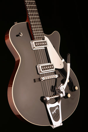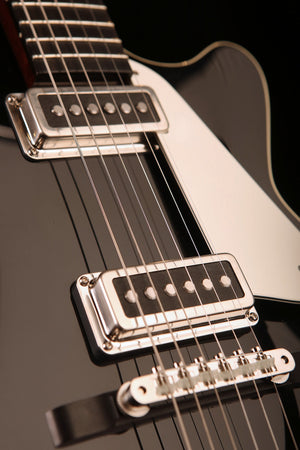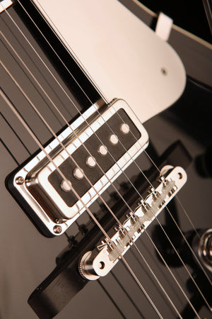 The guitar is powered by a pair of Ron Ellis Ellisonic pickups—custom-voiced for versatility—paired with DiMarzio 500K pots and Jupiter Vintage Yellow capacitors for a refined signal path. Premium touches like the Bigsby B3 vibrato, relic nickel Waverly tuners, and aged ‘Antiqued Black’ nitro finish complete its vintage-modern aesthetic. Whether on stage or in studio, the 470 JL offers a deeply expressive tool for serious players seeking a signature voice.