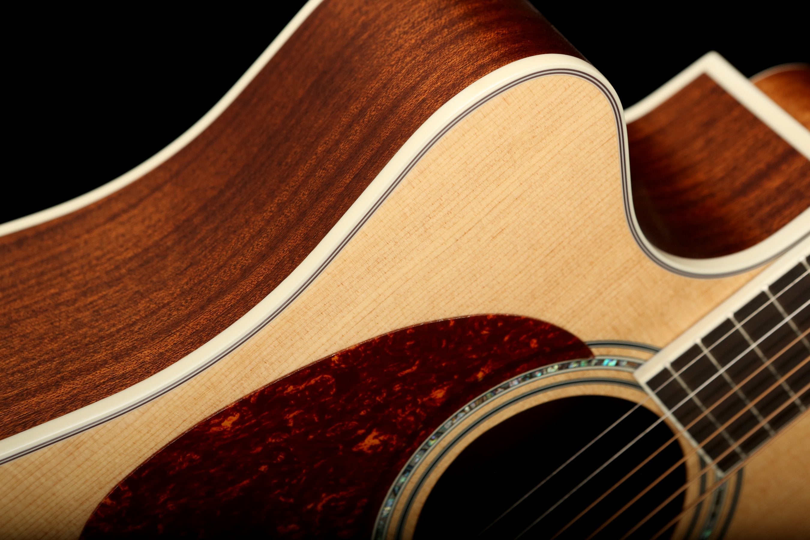 Featuring a comfortable dreadnought cutaway body and a choice of rosewood or ovangkol fingerboard, this guitar provides exceptional playability and versatility. The advanced scalloped X-bracing enhances the guitar's responsiveness, while the genuine bone nut and saddle contribute to superior sustain and resonance transfer.