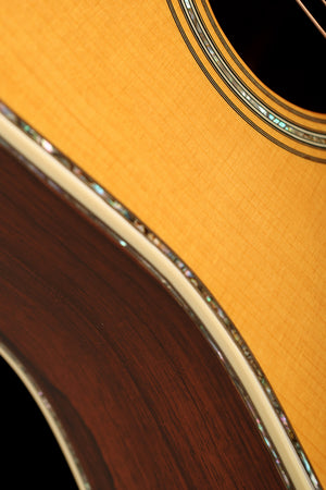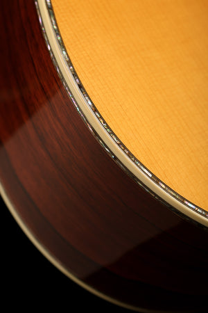 Adirondack spruce top with hand-scalloped Golden Era bracing for vintage-voiced power and clarity