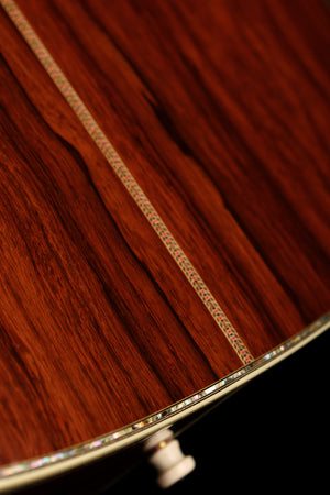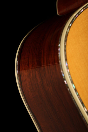 This 2007-built guitar is incredible in every way - they really don't get much better than this! It has the classic D-45 aesthetics, with hand-inlaid abalone throughout, grained Ivoroid binding a stunning set of rare Madagascar Rosewood back-and-sides. The top is premium Adirondack, for a loud and authoritative voice, with hand-scalloped Golden Era bracing. Premium features include fossilized Ivory nut and saddle, Gold Waverly tuners, Madgascar Rosewood headplate and a professionally-installed K&K Pure Mini pickup with Vintage Jack attachment. The sound is superb - big, warm, lush and rich, with endless headroom and wonderful touch-sensitivity. It's in beautiful condition too, with very little playwear whatsoever. The D-45 is king of the dreadnoughhts, and this is a king among kings! Includes original hardshell case.