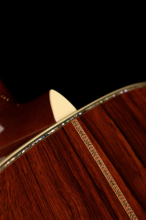 The Martin Custom Shop D-45 Marquis represents the pinnacle of acoustic guitar craftsmanship. Built to exacting Golden Era specifications, this instrument pairs an Adirondack spruce top with Madagascar rosewood back and sides, offering unmatched tonal depth, clarity, and projection. Every detail is executed to perfection - from the hand-scalloped bracing to the select abalone purfling and the elegant Mod-V neck profile.