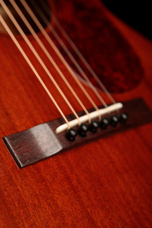 The Atkin OO14 Dust Bowl evokes the spirit of 1930s Depression-era acoustics — compact, soulful, and full of character. Hand-built in Canterbury, England, this all-mahogany small-body guitar delivers a warm, dry voice with a distinct midrange push that’s perfect for blues, ragtime, and fingerstyle players. Its scalloped bracing and lightweight construction create a remarkably open and resonant sound, while the soft-V neck profile feels immediately familiar and comfortable in the hand.