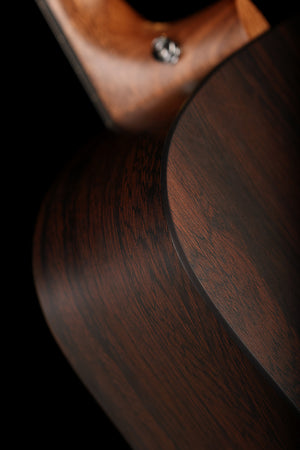 Solid spruce top and Brazilian-rosewood-patterned HPL back and sides for rich projection and clarity