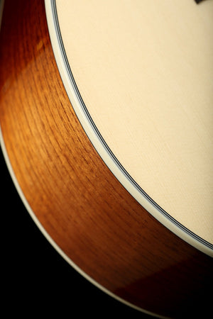 Solid Sitka spruce top with hand-scalloped X-bracing for clarity and projection