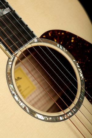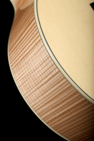 Crafted with a three-piece maple neck featuring a mahogany center strip, the AC630-BD is as stable as it is beautiful. The ebony fingerboard with pearl and abalone "Palace" inlays, along with figured maple binding and gold Gotoh tuners, bring high-end aesthetics to this commanding instrument. Whether you're strumming big chords or fingerpicking intricate melodies, this jumbo delivers volume, presence, and tonal richness in every setting.