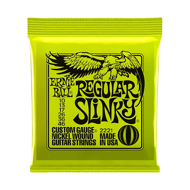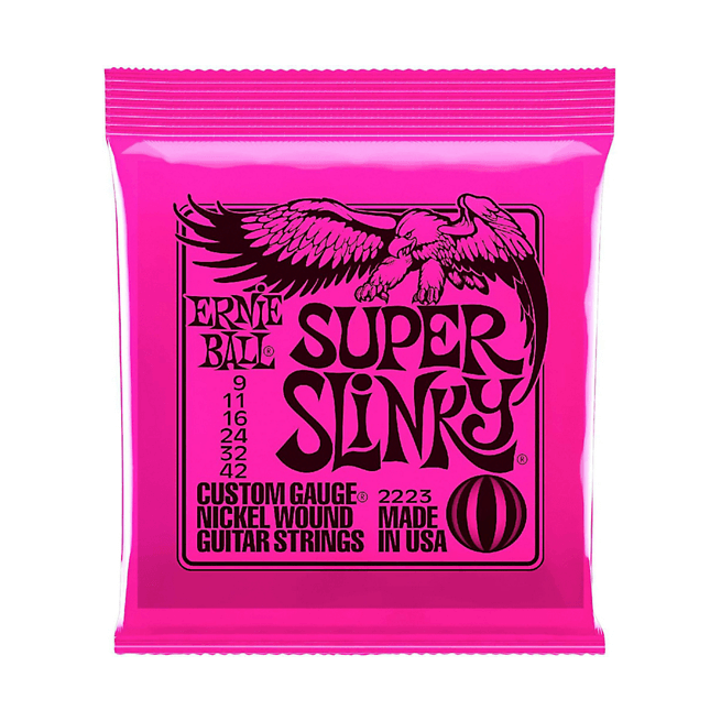Crafted with nickel-plated steel wrapped around a hex-shaped steel core, they deliver a balanced tone with great clarity and sustain. Precision manufactured for consistency and long life, Ernie Ball Slinky strings are the go-to choice for pros and enthusiasts alike.