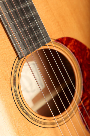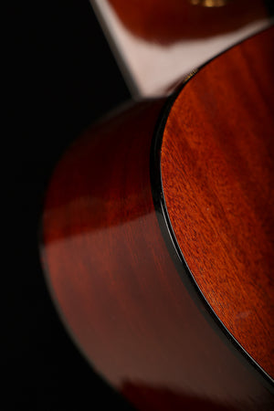 Mahogany back and sides provide a focused, woody midrange, while the lightweight mahogany neck and ebony fingerboard contribute to a smooth, articulate playing experience reminiscent of some of the finest pre-war acoustics. A wider 1 3/4" nut makes this model especially appealing to fingerstyle players, and the aged nitrocellulose finish enhances both resonance and vintage-inspired aesthetics. Finished with a lightly aged finish, the Essential OOO is a beautifully honest instrument built for expressive, musical playing.