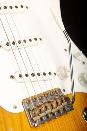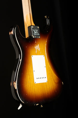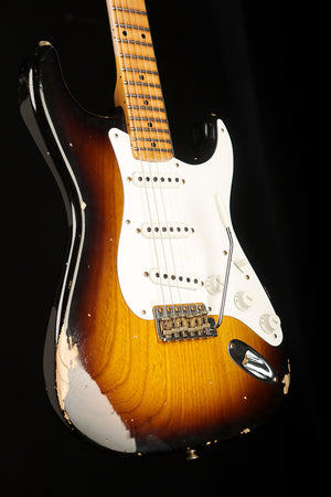 The Fender Custom Shop 70th Anniversary 1954 Stratocaster Relic® honors seven decades of one of the world’s most iconic electric guitars. Built with a two-piece select ash body in a Wide-Fade Two-Color Sunburst nitro finish, this Strat® offers the sweet midrange, sparkling highs, and tight lows that defined the original. Available in multiple aged finishes, each Relic model is meticulously crafted to capture the vibe and feel of a vintage instrument while delivering flawless playability.