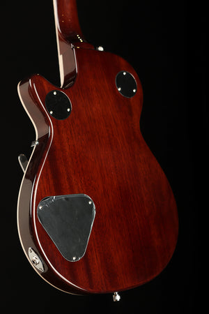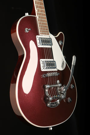 Equipped with Black Top Filter’Tron™ pickups, this Jet offers crisp articulation, vintage growl, and tight low-end response, perfect for everything from roots rock to modern indie. A Bigsby B50 vibrato tailpiece adds expressive character, while the treble bleed circuit maintains clarity at any volume. Finished in a striking Dark Cherry Metallic gloss, the G5230T embodies timeless Gretsch style with its signature silver plexi pickguard and G-Arrow control knobs.