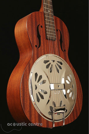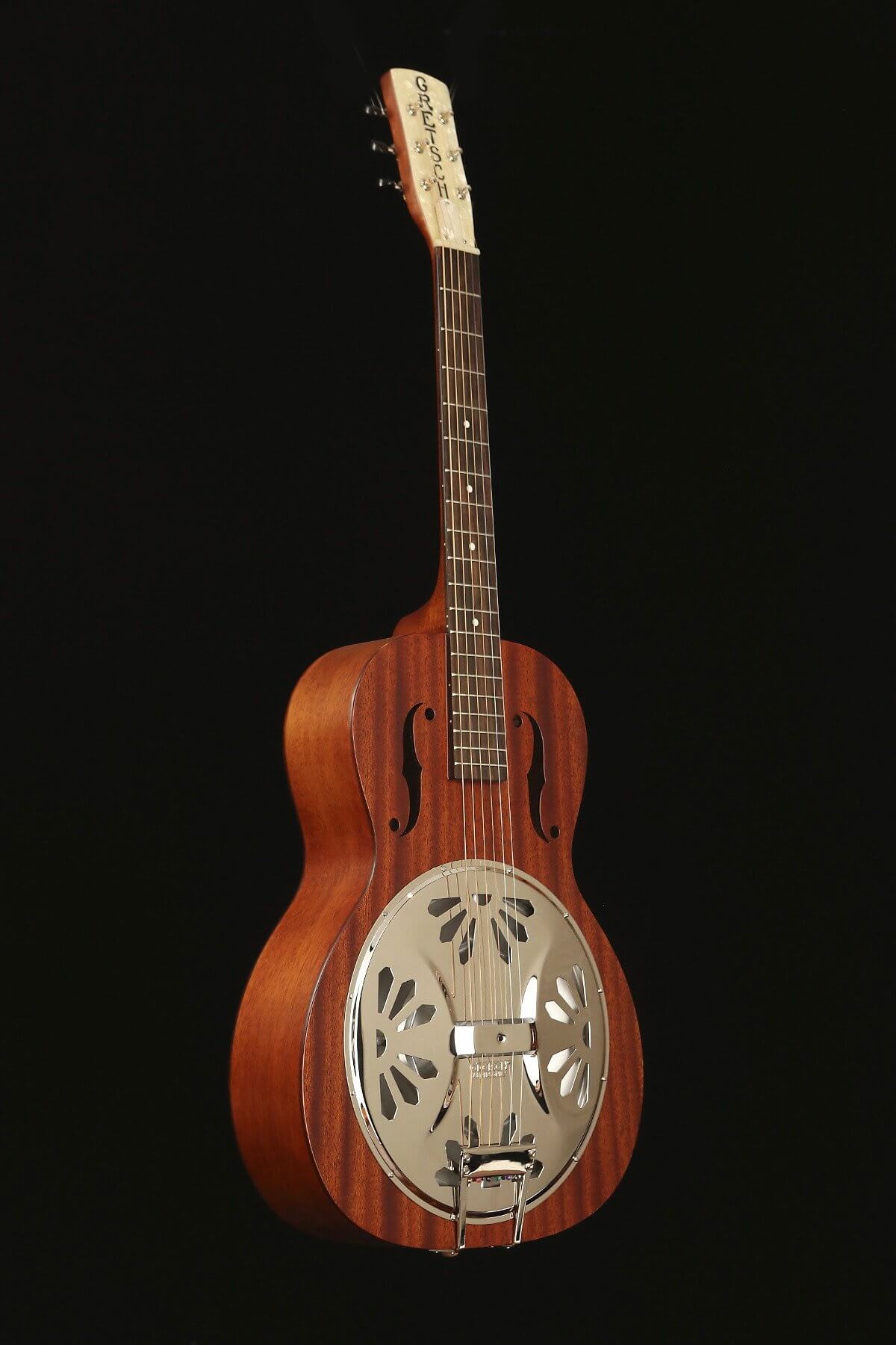 The body of the G9200 is crafted from laminated mahogany, providing a warm, vintage-like sound and a striking look with its vintage semi-gloss finish. The guitar’s mahogany neck features a soft "V" shape, making it comfortable to play, while the padauk fingerboard with a 15.75" radius ensures smooth playability across all frets. Ideal for players who love a blend of old-school charm and modern playability, the G9200 is ready to take your resonator playing to the next level.