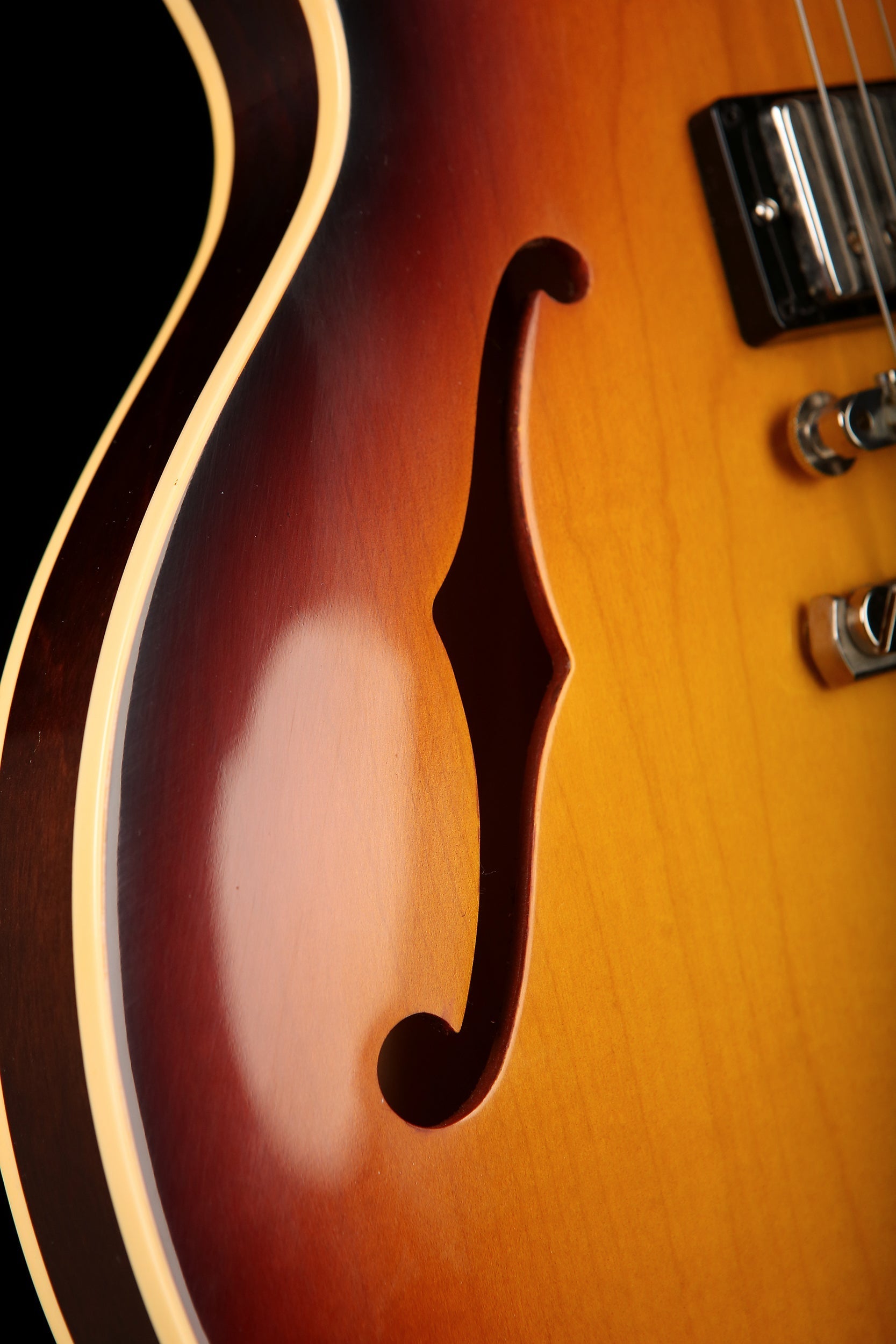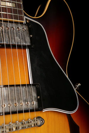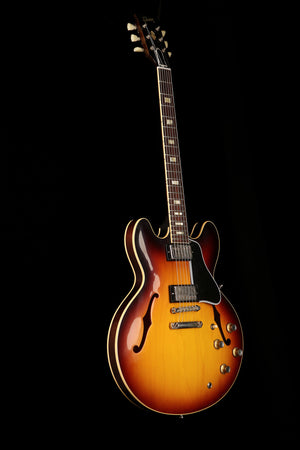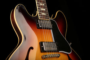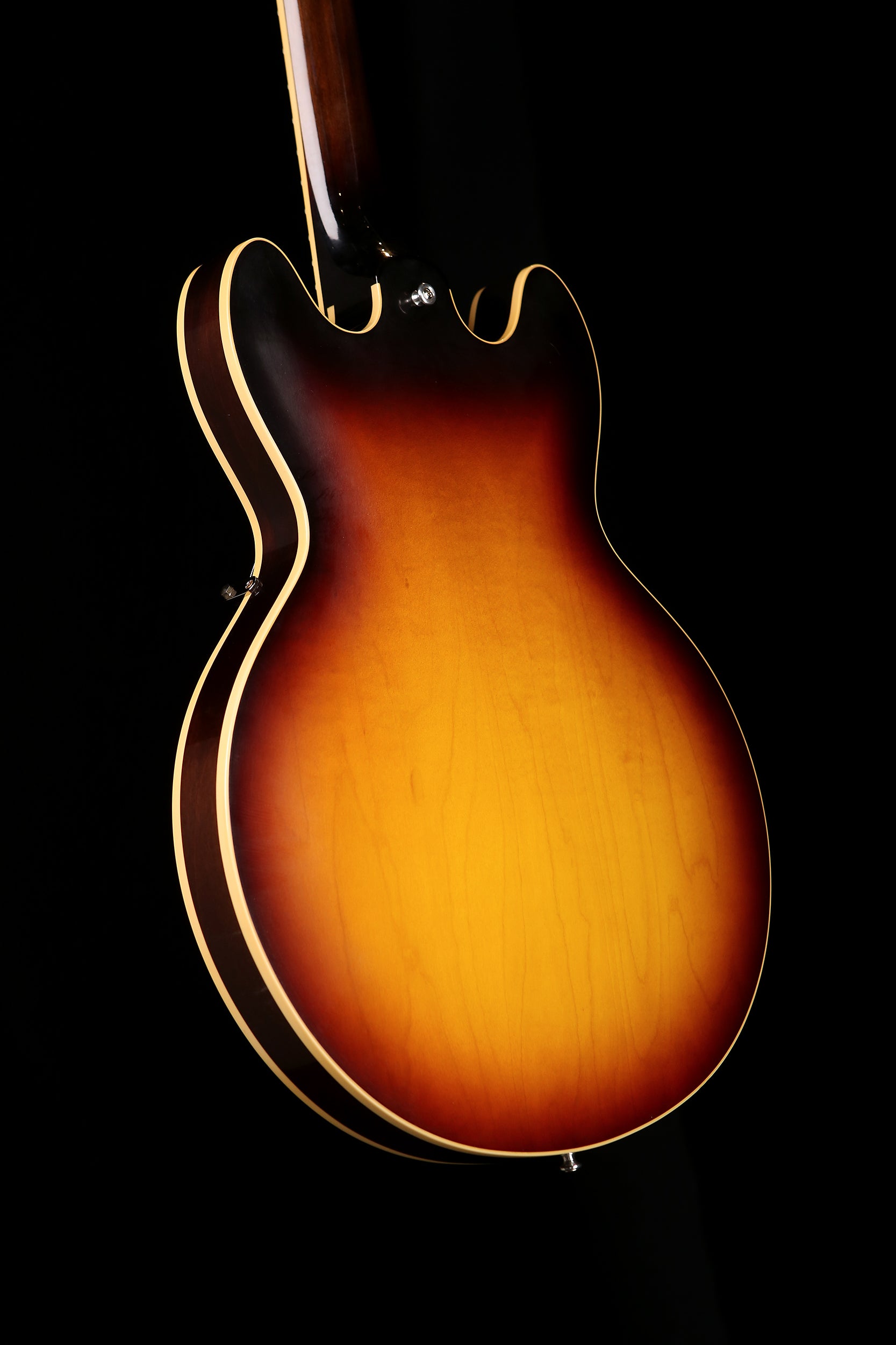 Introducing the Gibson Historic Reissue 1964 ES-335 VOS 'Vintage Burst' Electric Guitar, a meticulously crafted instrument that captures the essence of the iconic 1964 original. Recreated by the skilled artisans at Gibson Custom Shop, this guitar has been painstakingly studied, scanned, and meticulously reissued to offer an unparalleled playing and ownership experience. Every contour, profile, and detail has been authentically reproduced, from the sharp horn cutaways to the medium C-shape neck profile and small block inlays, ensuring this reissue embodies the exceptional build quality and tone of the vintage model.