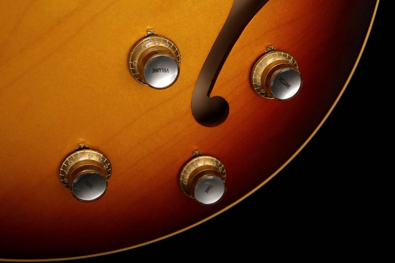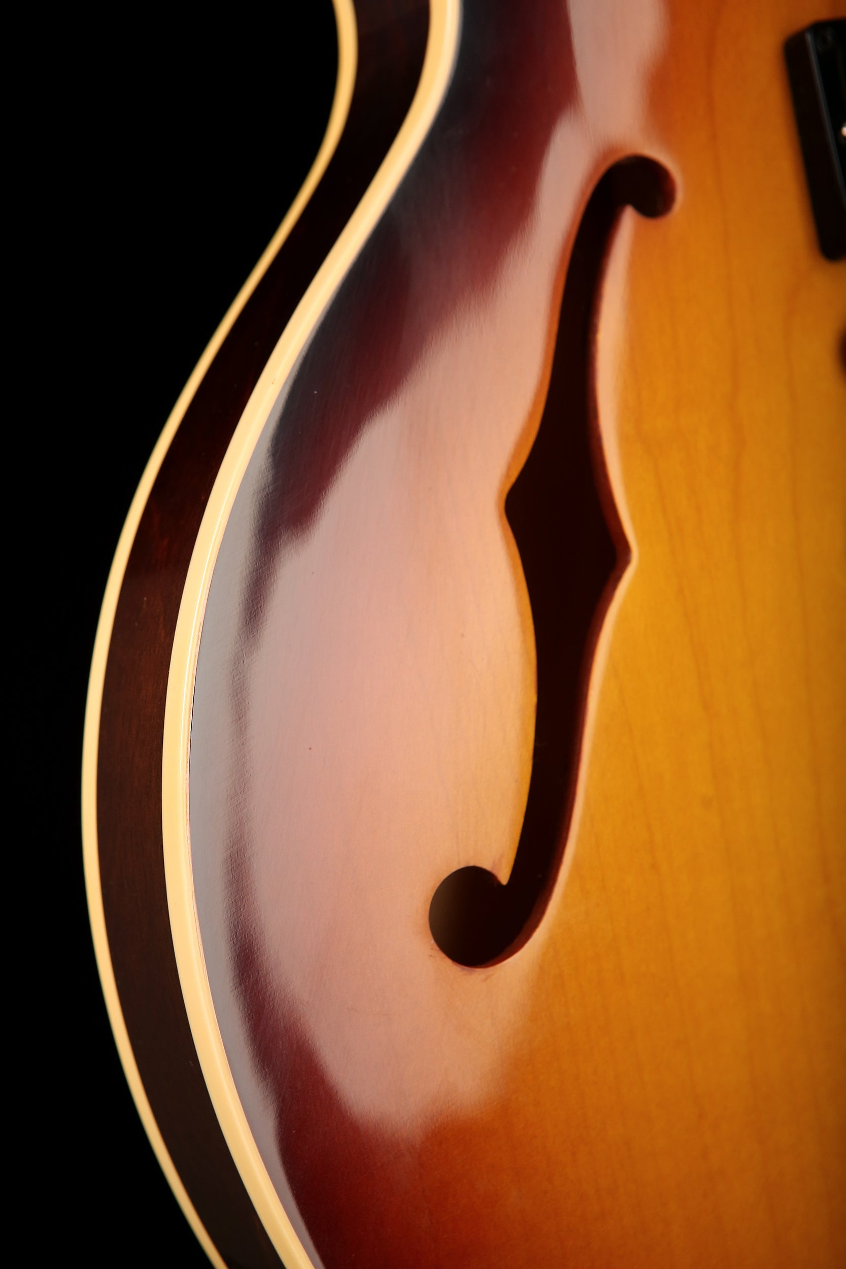 • Semi-Hollow Body Construction: With a solid maple center block for enhanced sustain and resonance.