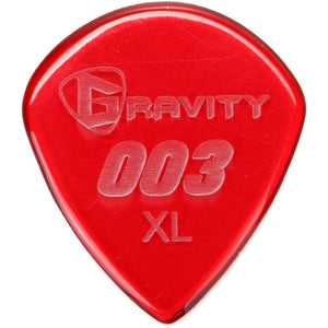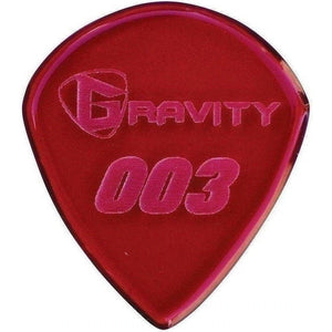 Based on the ever-popular Jazz III guitar pick shape, the Gravity 003 J3 Replica guitar pick gives guitar and bass players excellent attack with improved clarity over standard nylon picks. The 003 J3 Replica's thick, hand-polished cast acrylic grips fingers under stress and glides easily across strings; its beveled edge lends fullness to chord strums and adds speed to lead playing. Gravity 003 J3 Replica picks are 100% made in America by a small team of builders for quality and pick life you can trust.