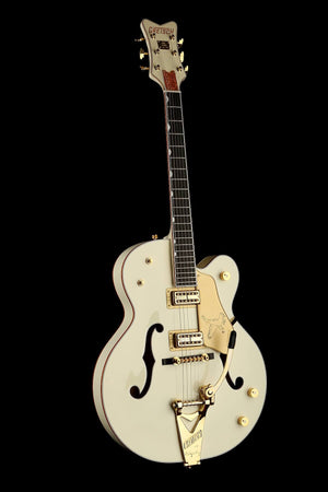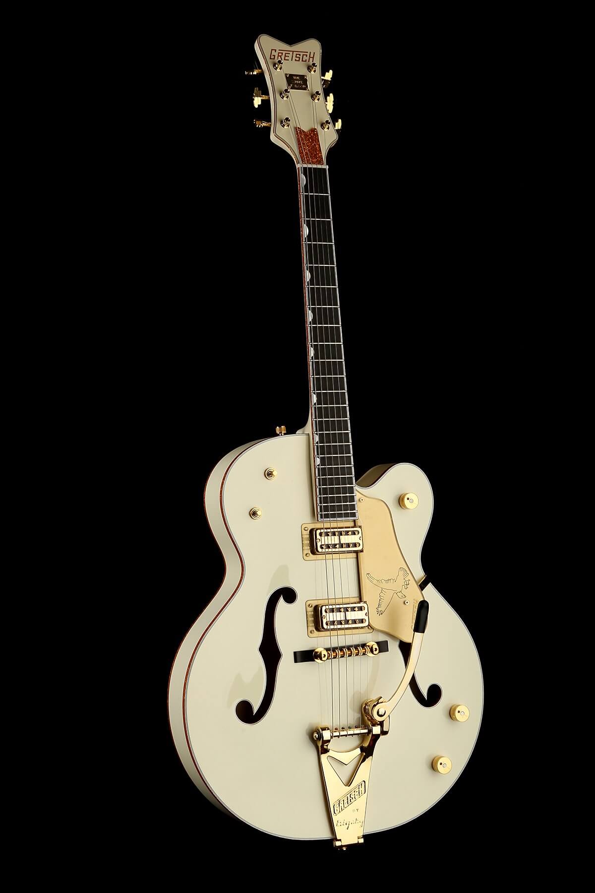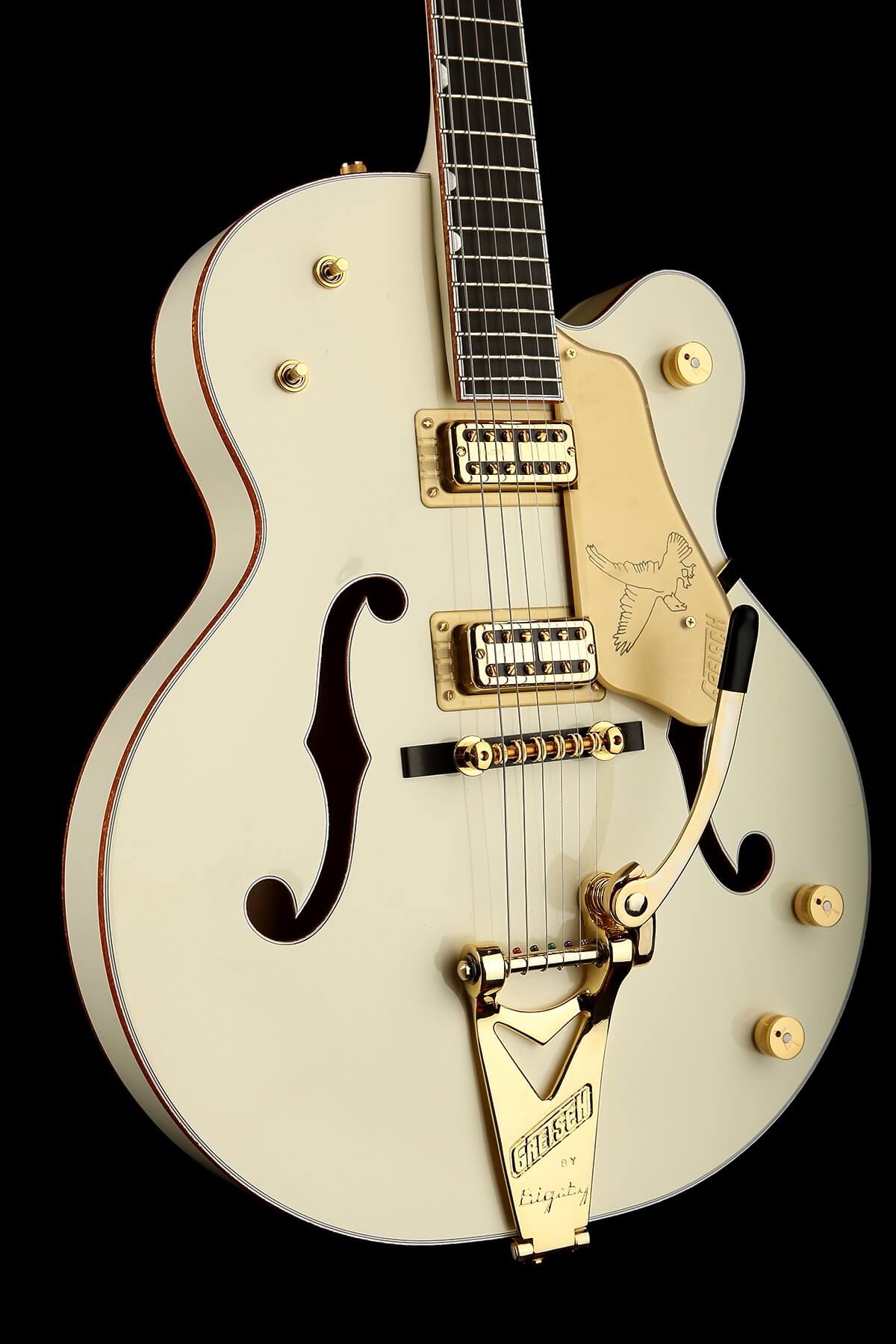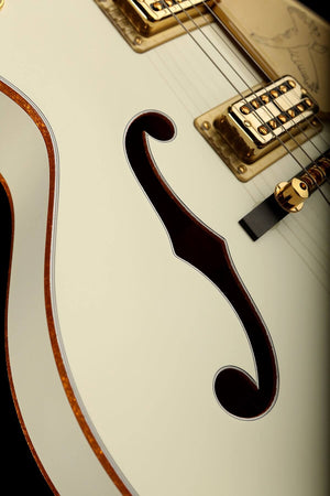 The Gretsch G6136T-59GE Vintage Select White Falcon is a true icon in the world of guitars. Since its debut in 1954, the White Falcon has stood as a symbol of musical excellence, often called the 'Cadillac of Guitars.' This modern reissue, crafted with the same attention to detail as the original, captures the essence of vintage Gretsch while incorporating contemporary enhancements for today’s musician. Its stunning White finish and Nitrocellulose lacquer exude sophistication, making it not only a pleasure to play but also a visual masterpiece.