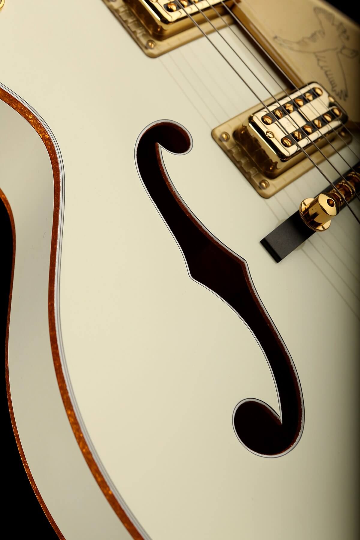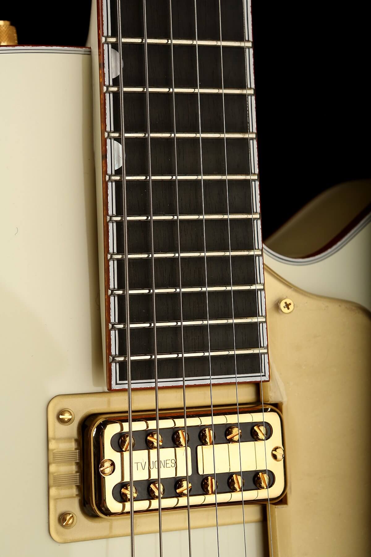 Equipped with TV Jones Classic Pickups, the G6136T-59GE delivers a versatile range of tones suitable for any genre, from smooth and warm to bright and articulate. The 'U' shaped neck profile ensures comfortable playability, while the pinned ebony bridge and B6G Bigsby tailpiece provide exceptional sustain and tuning stability. Whether you're performing on stage or recording in the studio, the White Falcon offers unmatched sound and timeless elegance that has made it the choice of legends like Neil Young and Malcolm Young.
