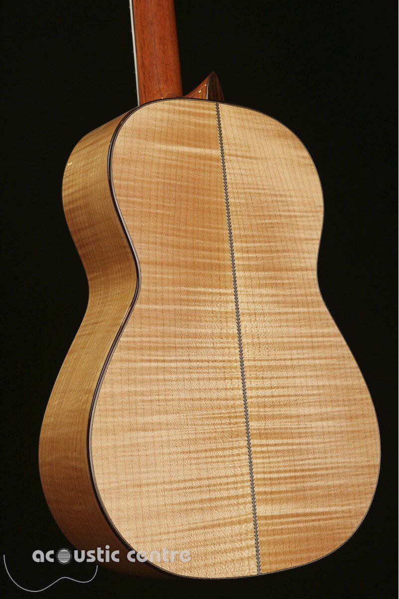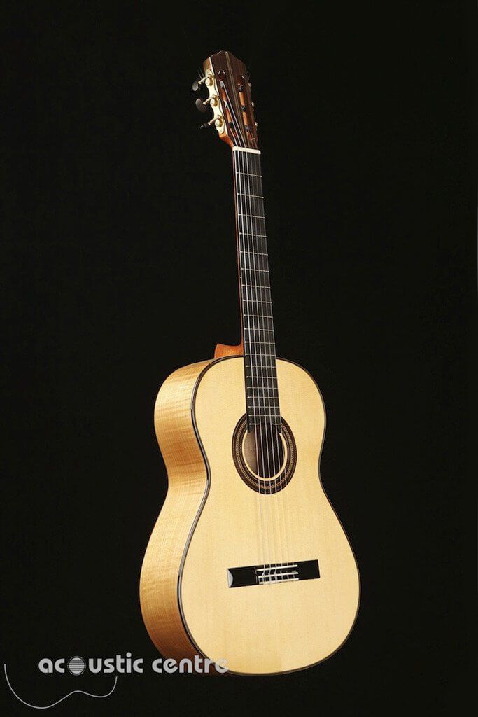 This guitar can produce the sounds of certain styles of classical music better than other guitars. The maple back and sides on this guitar produces sounds that are almost “angelic”. The maple back and sides facilitate a sound that is clear with well-defined trebles. Tarrega’s Lagrima was composed for a guitar with maple back and sides https://www.youtube.com/watch?v=MxCNDwF3PU8. This “Hauser” guitar design is similar to the Torres type guitar played by Tarrega in the 19th Century. This excellent guitar has a balanced sound and offers some different sound qualities over rosewood back and sides. This is a Guitar worth having.