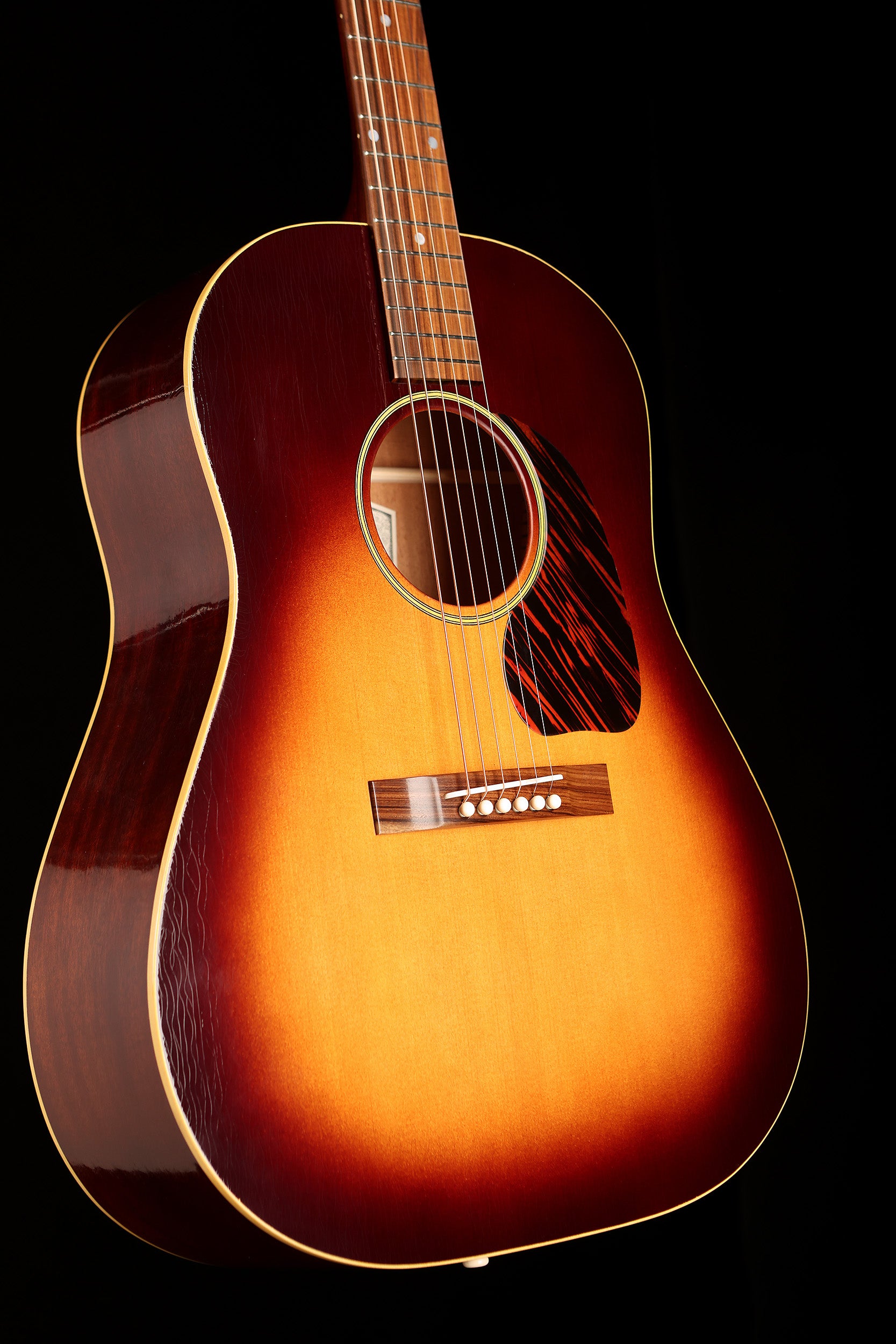 With a shorter scale length and pre-war scalloped bracing, the Forty Three delivers exceptional warmth and projection. Its classic round-shoulder dreadnought shape, paired with the Santos rosewood bridge and tortoise-style pickguard, evokes a timeless aesthetic. Built to emulate the early Gibson J-45, it combines all the right features for a truly vintage sound with modern precision. The subtle aged lacquer finish adds a touch of history, giving it the charm of a decades-old guitar straight out of the case. Whether you’re playing folk, blues, or country, The Forty Three offers a tonal palette that rivals some of the finest vintage guitars, while maintaining Atkin's signature quality and attention to detail.