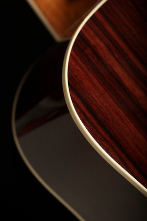 Solid Sitka spruce top and Indian rosewood back/sides deliver rich lows, clear highs, and balanced projection