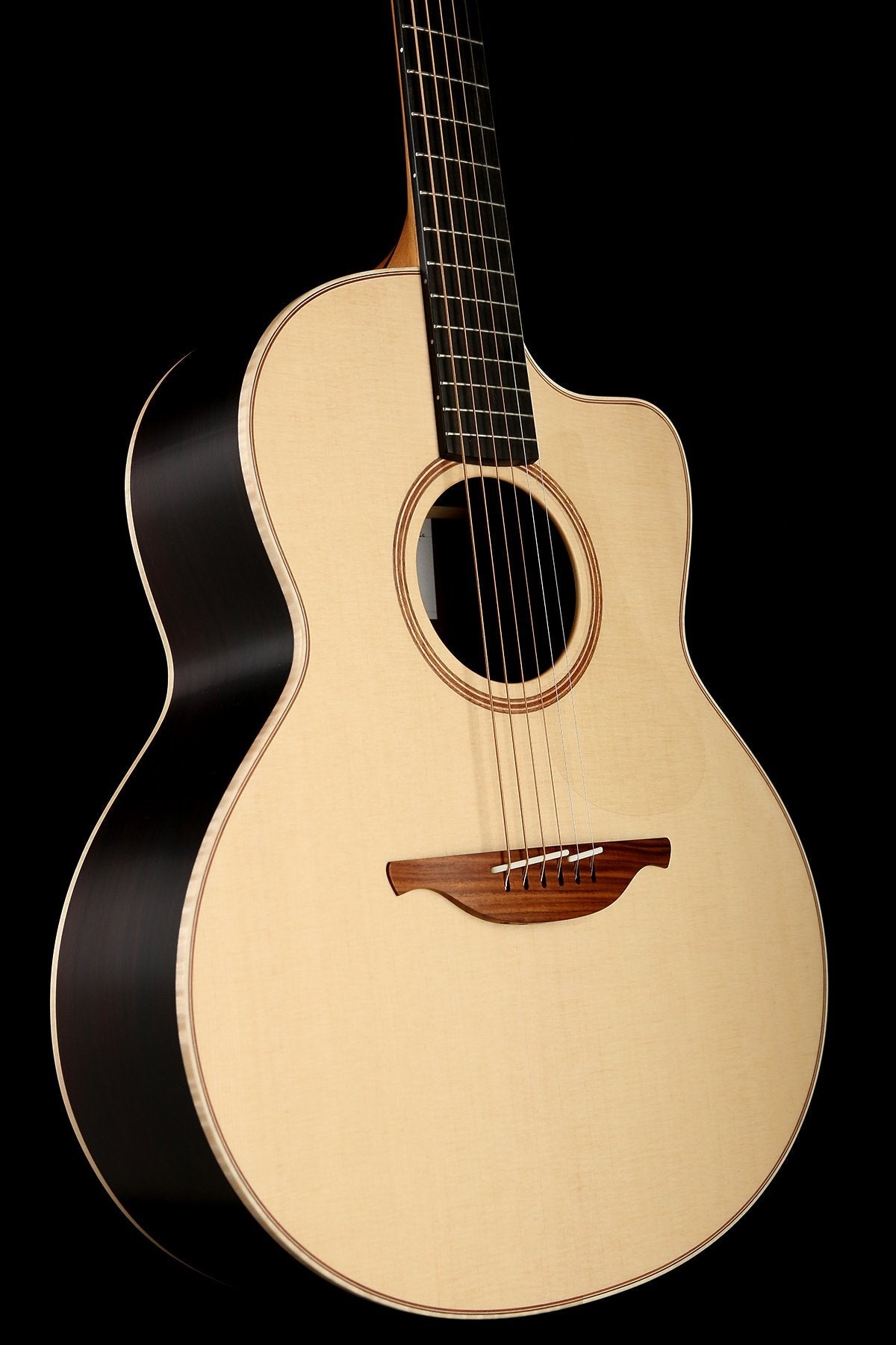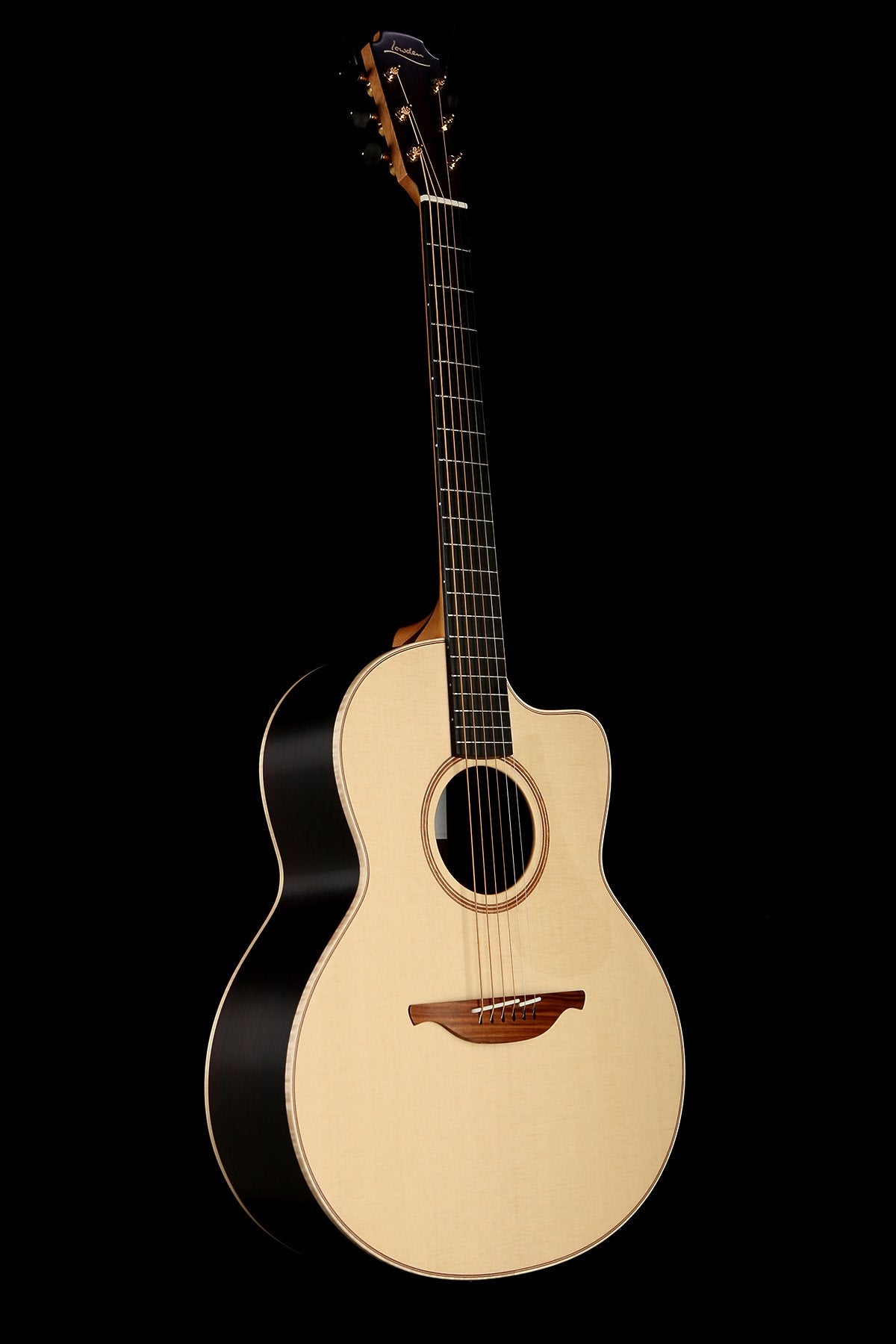 The guitar features a five-piece mahogany and rosewood neck, providing stability and strength, while the ebony fingerboard ensures smooth playability. The Lowden signature "Dolphin Bracing" pattern enhances tonal balance and sustain, allowing for rich sound production across all registers. The cutaway design provides easy access to the upper frets, making the F32C a versatile choice for any musician looking for comfort and superior sound.
