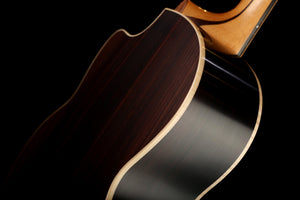 • Solid East Indian Rosewood back and sides for deep bass and clear treble tones