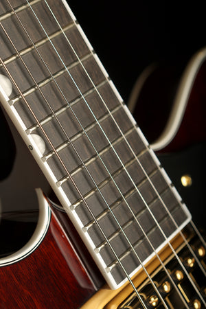 • 2.25" maple laminate body with parallel bracing for classic hollow-body resonance