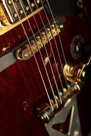 The Gretsch Abbey Road Studiomatic captures the spirit of one of the most iconic recording locations in the world, blending classic hollow-body resonance with modern studio-ready versatility. Its 2.25" maple body and parallel bracing deliver that unmistakable Gretsch chime—airy, punchy, and full of harmonic texture—while the ebony fingerboard adds clarity and refinement to every note. The custom Filter’Tron pickups and exclusive Rumble Filter circuit, developed with Abbey Road engineers, give you a wide palette of tones that move effortlessly from vintage warmth to modern definition.