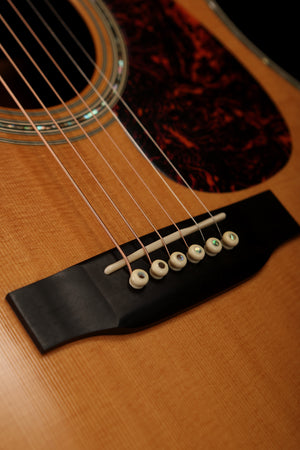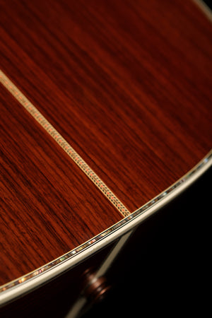 Adorned with hand-inlaid abalone pearl on every edge, the D-45 is a masterpiece of precision and elegance. Its 14-fret dreadnought body, low-profile neck, and ebony fingerboard make it effortless to play, while its ornate appointments—abalone rosette, ivoroid binding, and gold tuners—underscore its position as Martin’s flagship model. This D-45 embodies the sound and look that define the phrase “world-class acoustic guitar.”