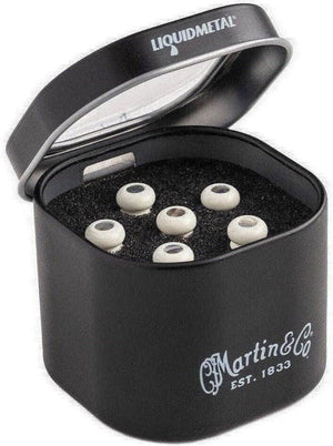 Upgrade your acoustic with the Martin Luxe Liquid Metal Bridge Pin Set in Bone with Pearl Inlays. These precision-engineered pins are crafted from Liquidmetal®, a high-performance zirconium alloy designed to maximize energy transfer between your strings and guitar top. The result is increased sustain, greater volume, and a more dynamic tonal response — all from a subtle hardware change.