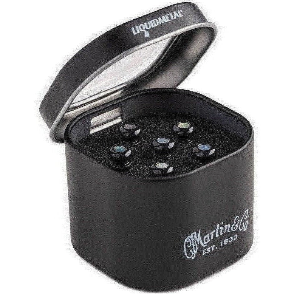 Enhance your guitar’s tone and aesthetics with the Martin Luxe Liquid Metal Bridge Pin Set in Gloss Black with Pearl Inlays. Made from cutting-edge Liquidmetal® zirconium alloy, these bridge pins reflect string energy rather than absorbing it, resulting in increased sustain, enhanced volume, and greater tonal clarity. Whether you're upgrading a cherished Martin or customizing your go-to acoustic, this set offers a serious sonic advantage.