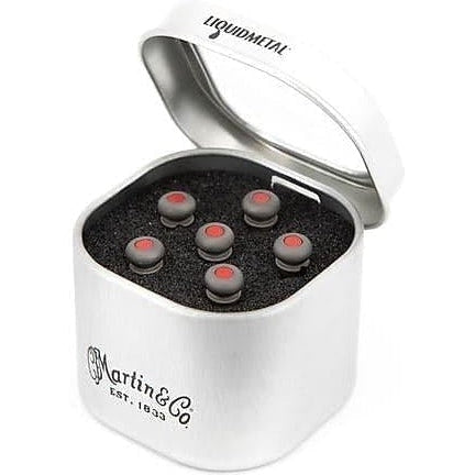 Give your acoustic guitar a tonal and visual upgrade with the Martin Luxe Liquidmetal Bridge Pin Set in Turkish Emery. These high-performance pins are made from a premium zirconium alloy known as Liquidmetal, offering exceptional energy transfer from strings to top. The result is improved sustain, volume, and clarity—perfect for players looking to get more out of their instrument without major modification.