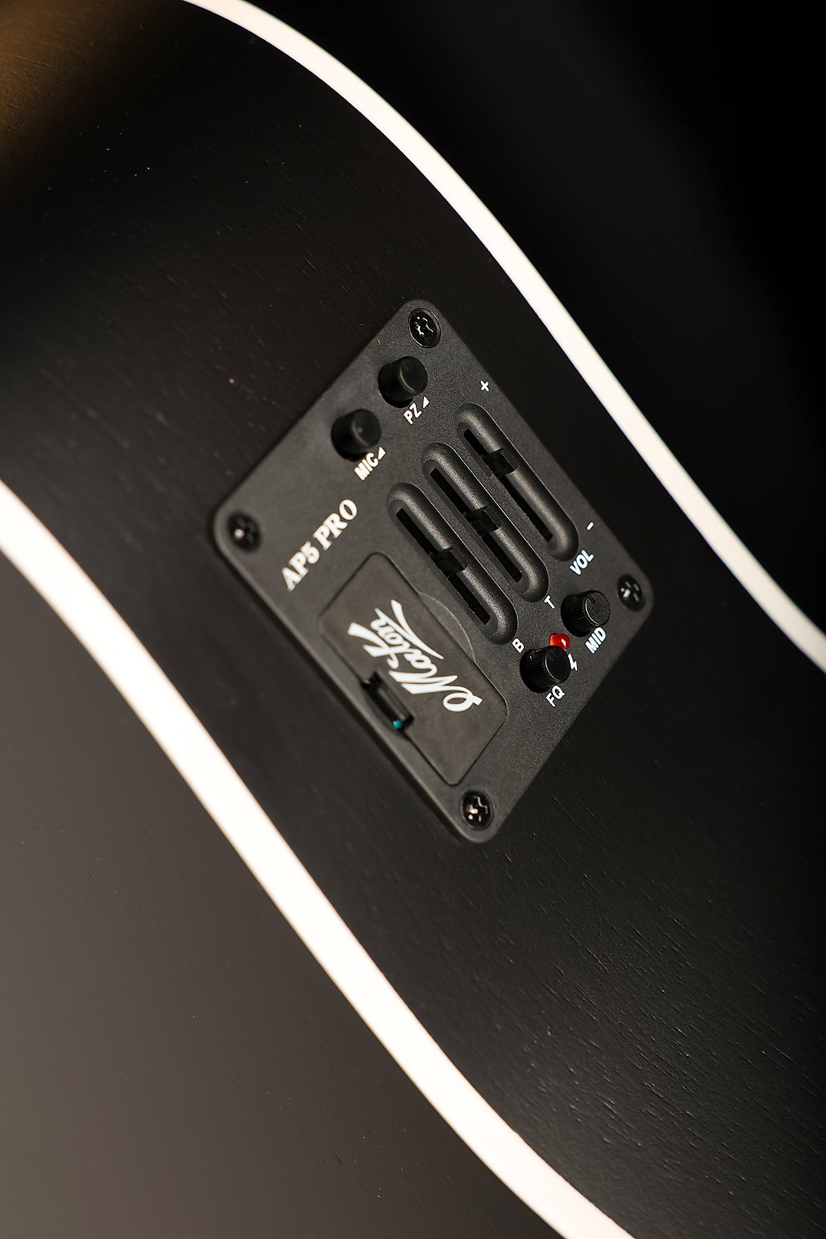 Built with a smooth mahogany neck and a Streaky Ebony fingerboard, the Troubadour offers excellent playability and a refined touch. Scalloped Maton X bracing ensures balanced tonal response, while elegant herringbone binding and rosette add a vintage aesthetic. Equipped with the renowned AP5 PRO pickup system, this guitar delivers natural acoustic tone with clarity and depth when amplified. Paired with a Maton hardshell case, it’s the ideal performance companion for musicians on the move.