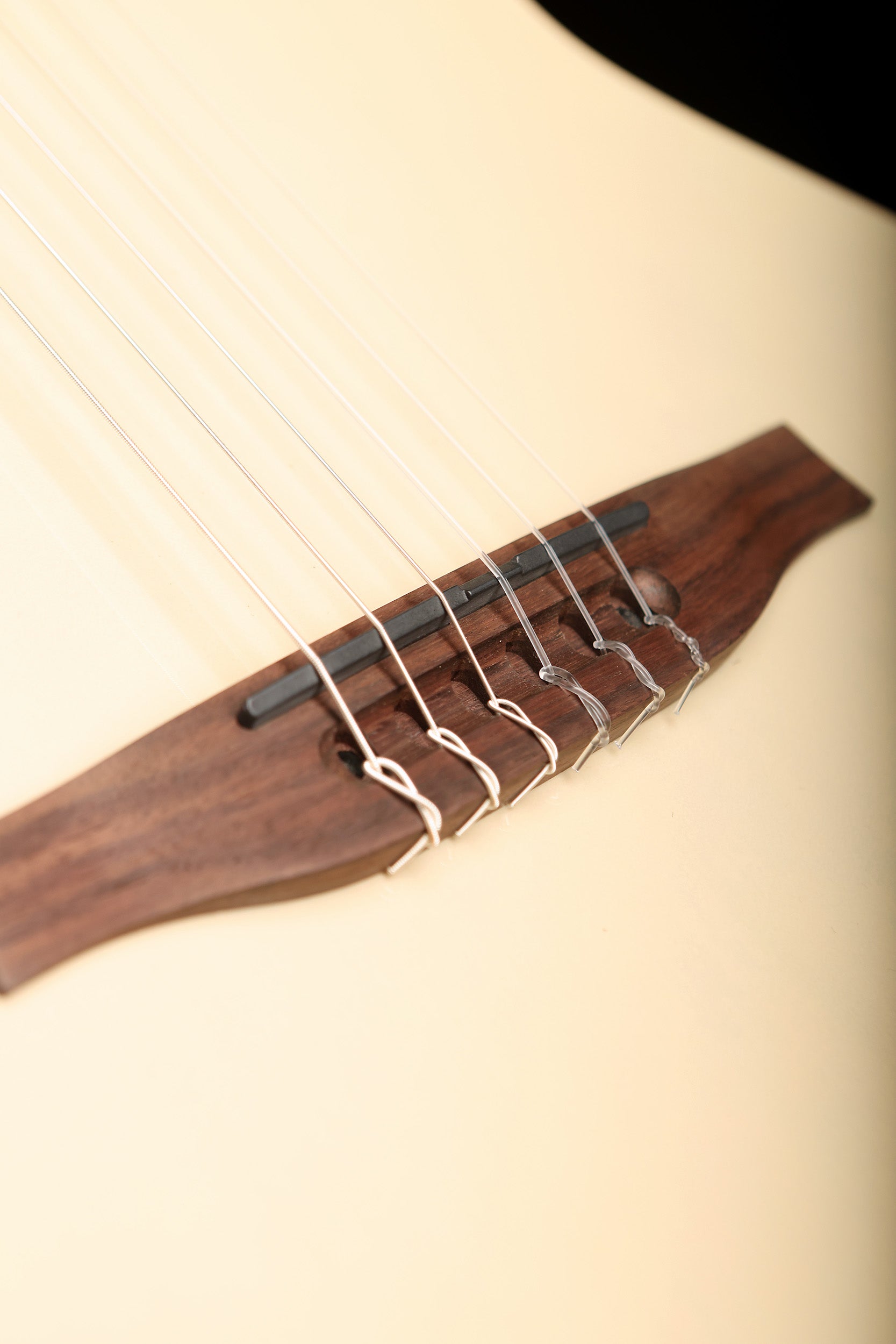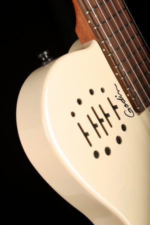 The Godin Multiac Mundial celebrates three decades of Multiac innovation with a refreshed, modern design that’s lighter, more resonant, and more stylish than ever. Handcrafted in Canada, this nylon-string guitar features a hollowed silver leaf maple body with a solid cedar top and Spanish cedar neck, providing a natural, organic tone with exceptional comfort and balance. The Ozark Cream finish gives it a contemporary aesthetic, while its lightweight build makes it the perfect companion for stage or travel.